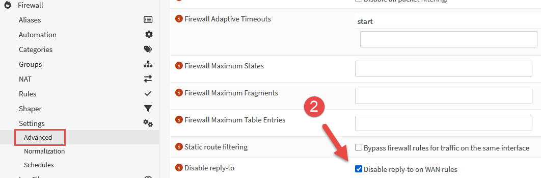 The second setting required to allow this to work can be found under Firewall > Settings > Advanced