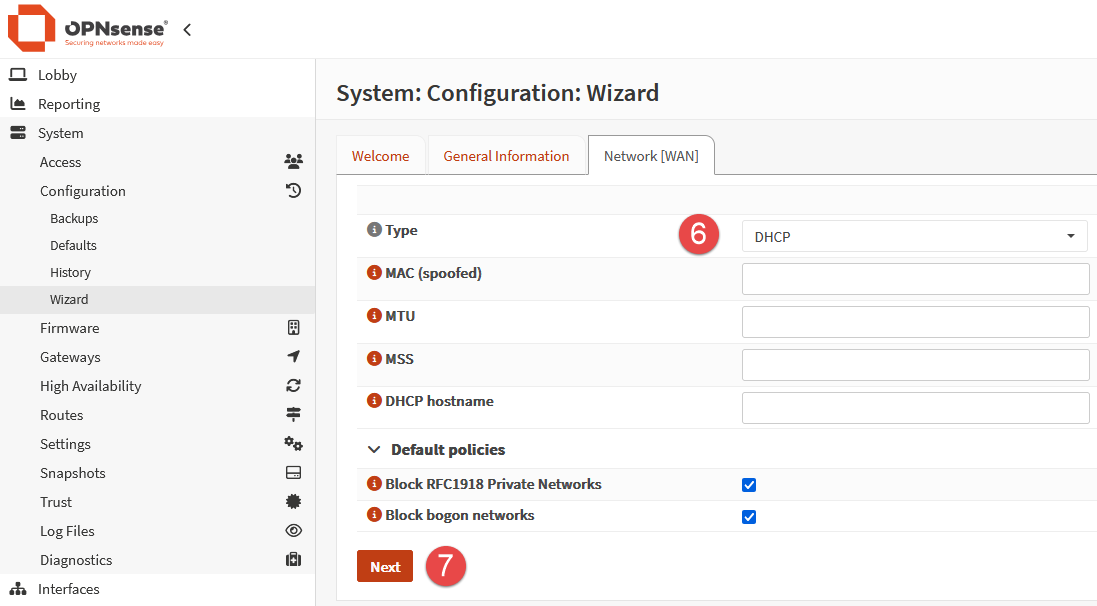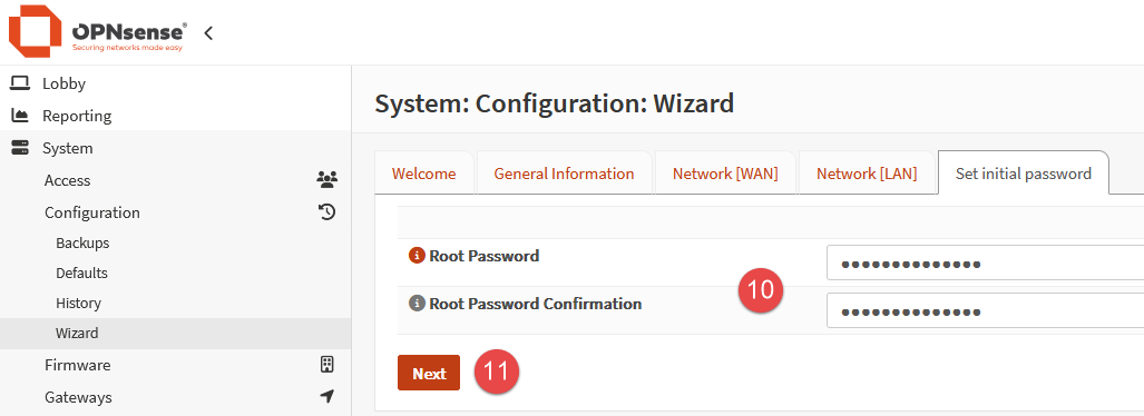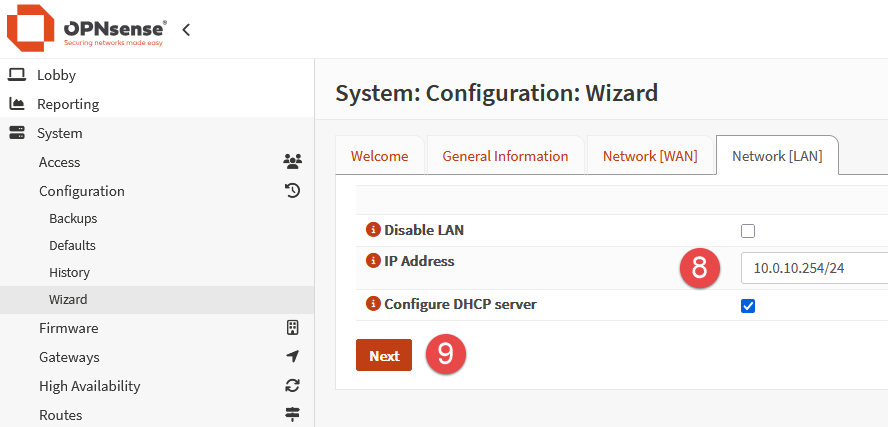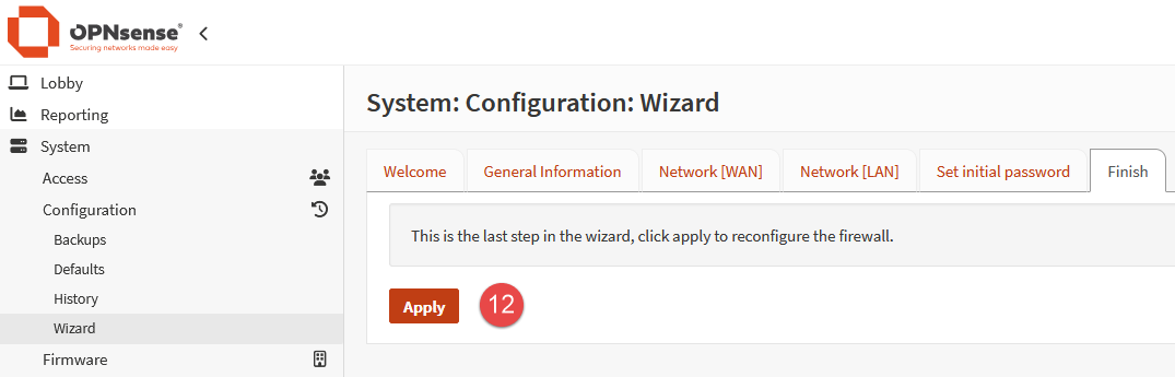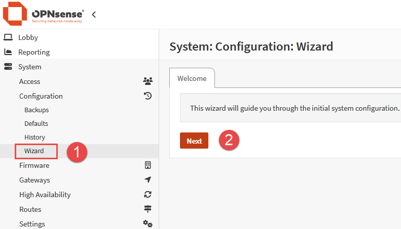 With OPNsense installed, now we can proceed to configure it. Navigate to System > Configuration > Wizard