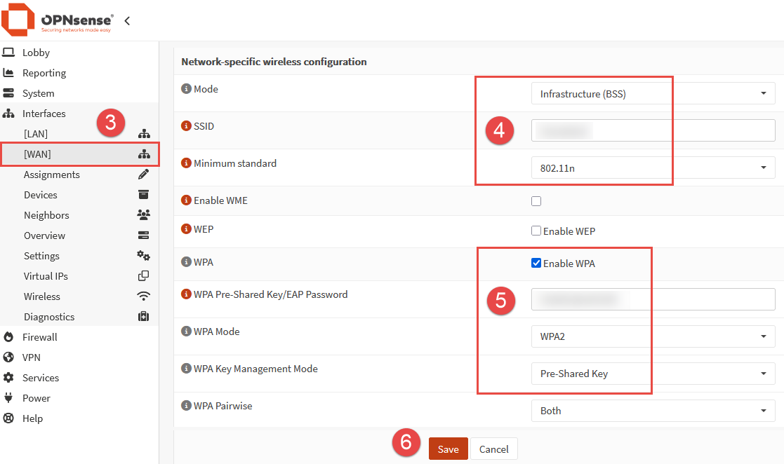 The image below shows the output of a test VM I used to boot into OPNsense for demonstration purposes. The actual WiFi interface name in my case was referenced as “rtwn0”.